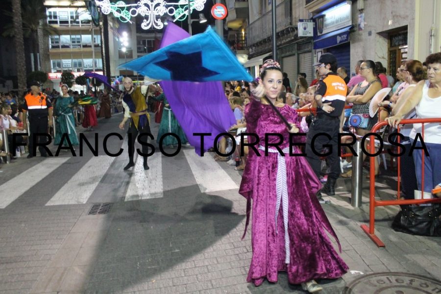 Gran espectáculo donde los guerreros cristianos despiden a sus mujeres para marcharse a la guerra, todo ello aderezado de los sutiles movimientos de grandes banderas.