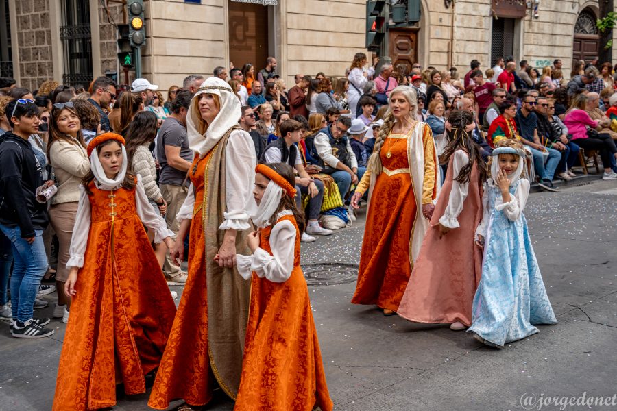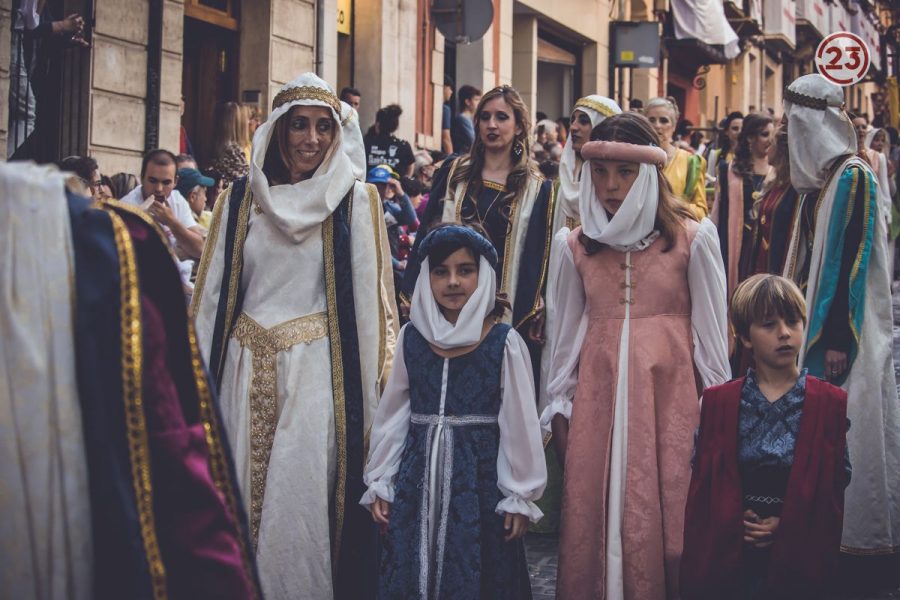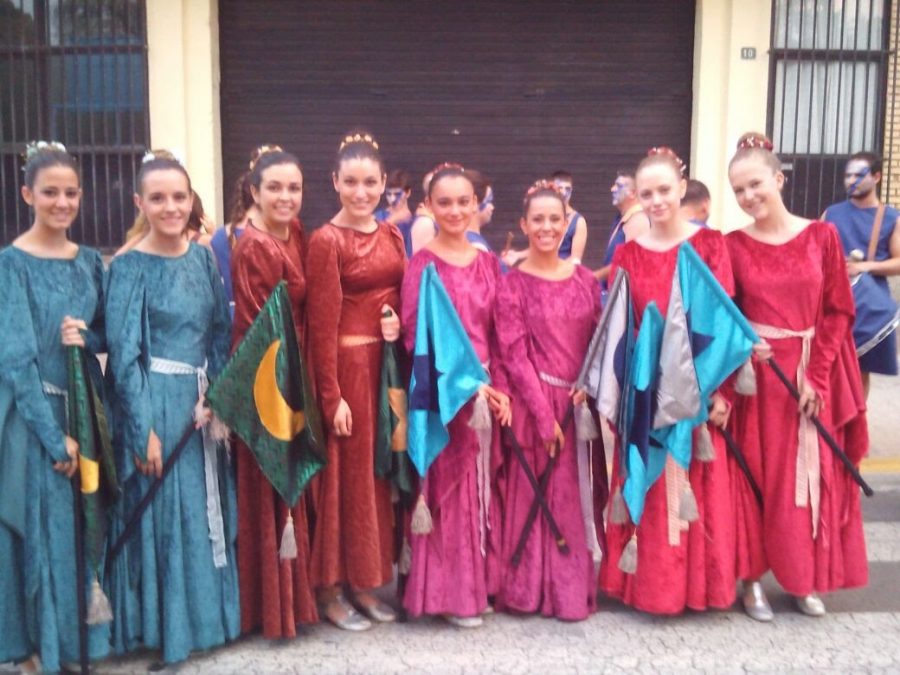 Los ondeantes movimientos de las banderas llenan las calles a su paso. Ballet moro o cristiano o que combina ambos ejércitos.