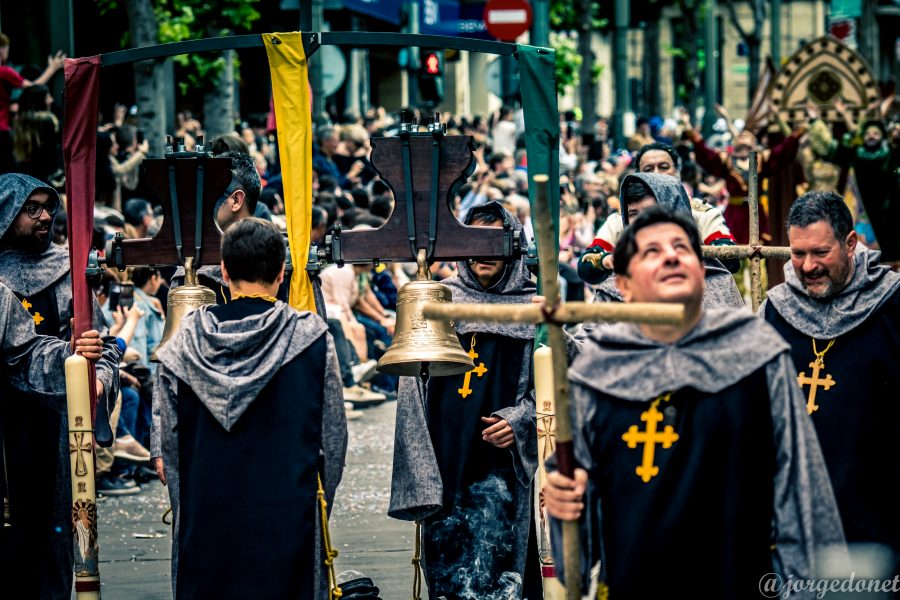 Monjes que pueden ir acompañados de cirios Pascuales, inciensarios, cruces o campanario móvil.