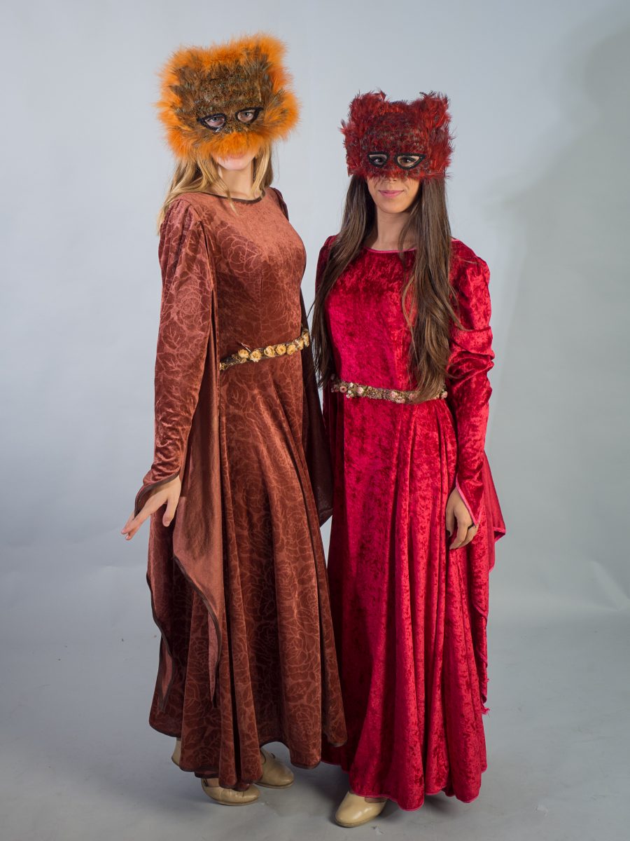 Ballet de mujeres guerreras, cazadoras y amazonas. Con pieles de animales, cabezas de lobo y lanzas.